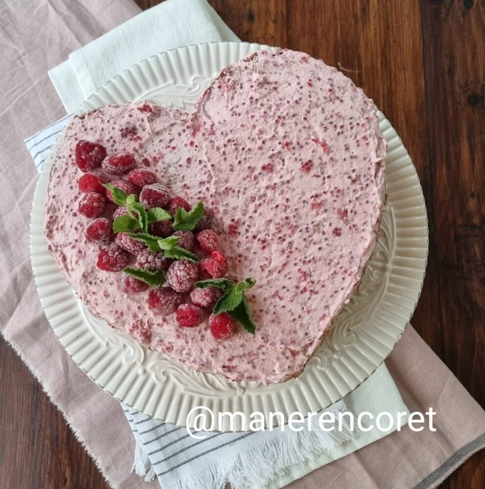 - Torta corazón de frutilla o frambuesa